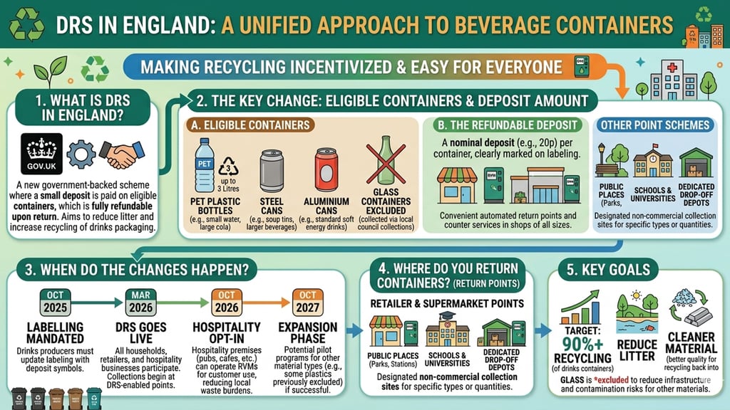 Launching October 2027, the DRS will cover PET plastic, aluminium, and steel drink containers. This will: